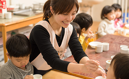 昨年から、担任者として4人のスタッフと一緒にクラスを担当しています。子どもたちに対しても、スタッフに対しても責任ある立場です。子どもたちの主体性を大切にし自信が持てる心を育む丁寧な保育を目指し、保護者の方々の子育てをサポートします。DOHENでは、担任と副担任が保育のプランや遊びを考え、子どもたちと積極的にかかわります。スタッフについては、主に新任職員には業務指導と併せ、一般的なルールを守れるような社会人基礎力を伸ばすような指導を心がけています。私はここ数年、Recruitスタッフとして採用活動にかかわっていて、DOHENを法人として理解することができ、他のサービス部門で働くスタッフとの交流も増えました。この経験のおかげで、私は自分の視野を広げることができました。福祉の現場で働く者として、保育士として、福祉業界に対するネガティブなイメージを払拭し、保育の楽しさや喜びを伝え、DOHENを知っていただければと思っています。
