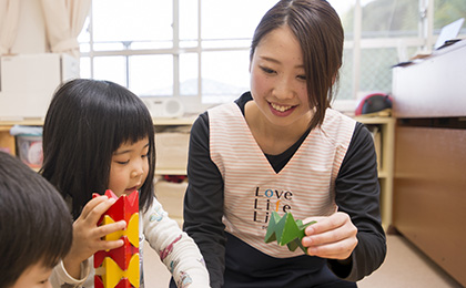 一度保育士をあきらめ退職しましたが、歯科衛生士など転職を経て、どうしてもまた保育士として働きたいと思い就職活動をしていた時に、DOHENを紹介されました。検索したホームページは、写真の雰囲気も良く法人理念やその取り組みが詳しく書いてあったのですが、やはり一度面接してみてからと思い応募しました。実際、転職は怖いもので、ホームページの情報も本当かどうかわかりません。初めて保育園に訪れた時、スタッフの丁寧な挨拶と対応にとても安心した覚えがあります。実際に入社してからもその印象は変わりません。入社のタイミングが新任職員と一緒だったので、私はマニュアルの指導や研修を受けさせてもらいました。保育園によってやり方も違いますし、中途採用でもしっかり育てていこうという姿勢が感じられ、とてもうれしかったです。