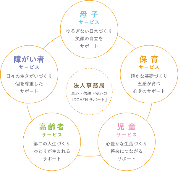 これからの福祉は新しい視点での多様な取組が必要です。時代の流れや世の中の価値観に翻弄されることなく、ゆるぎない理念を持って、次代の福祉をご提案していきます。